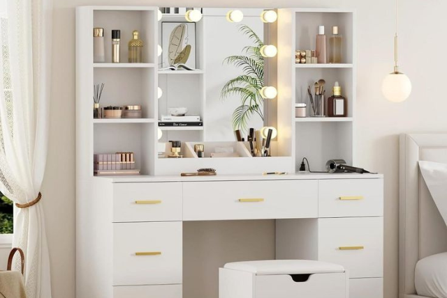 Stylish dressing tables with mirrors, drawers, and premium finishing.